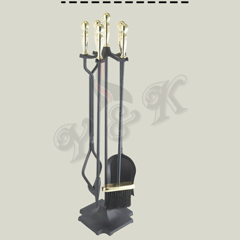 Traditional Design with Polished Brass Finished Handles,Black Finished tools and Stand