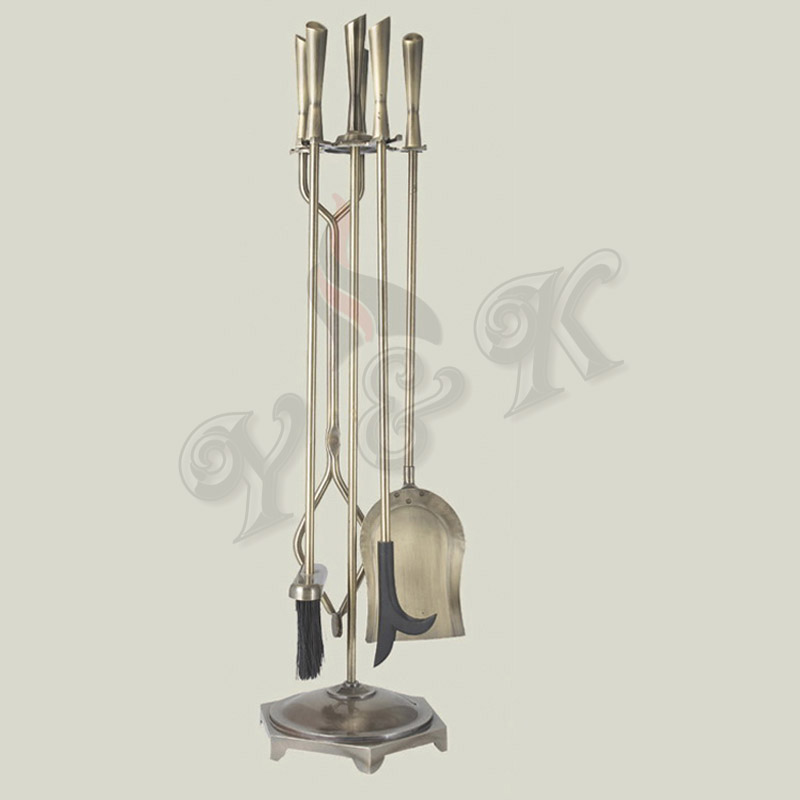 Traditional Design with Antique Brass Finished Fireplace Tools Set